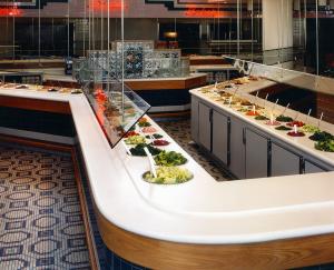 - build-out food service buffet, POS station, checkout stand, and back bar